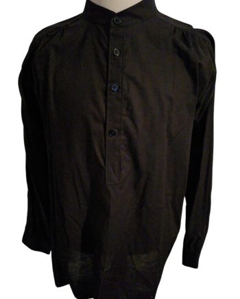 This cotton shirt has really classy etched buttons that are antique brass tone.